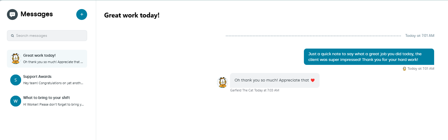 Now, whether you're an admin or a worker, you can quickly send and receive messages without the hassle of emails or phone calls!