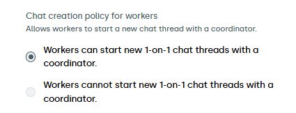 Control whether workers are allowed to start new 1-on-1 chats with coordinators.
