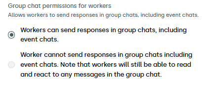 → Workers can reply and contribute to the conversation in group chat threads.Option 2: Workers cannot send responses in group chats, including event chats